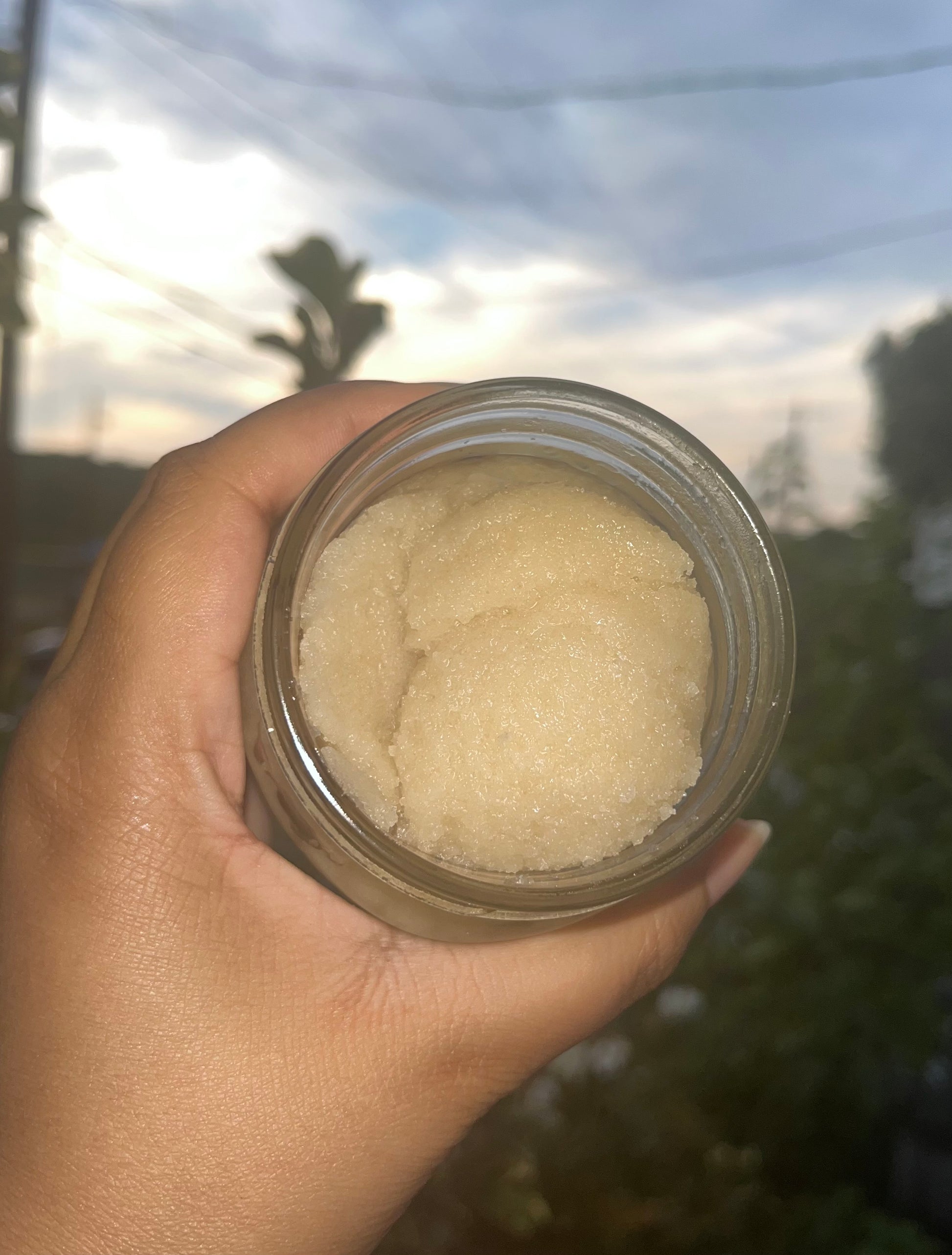Moisturizing body scrub with hints of peach, lemon, & pineapple