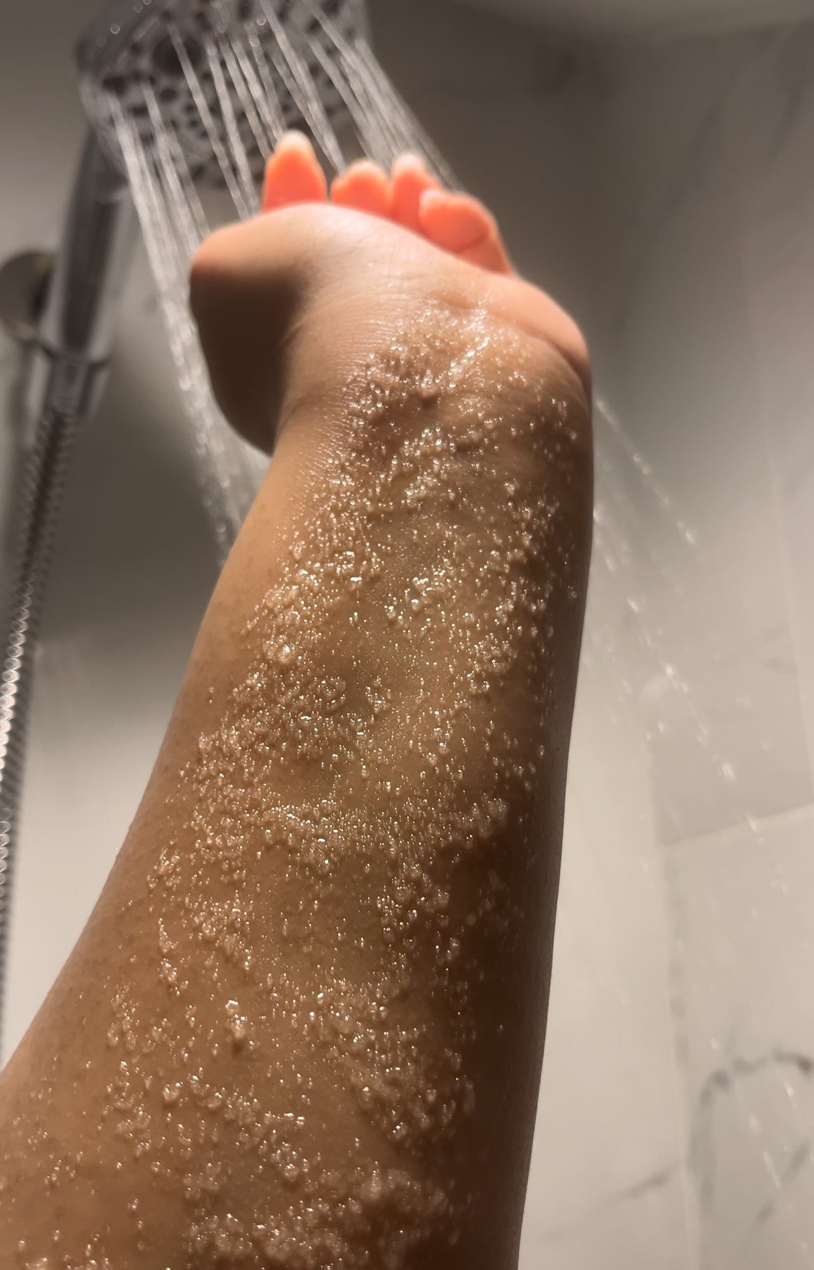 On freshly cleansed skin, in a shower or bath apply sugar scrub to skin and rub in a circular motion then rinse to reveal your radiant glow.